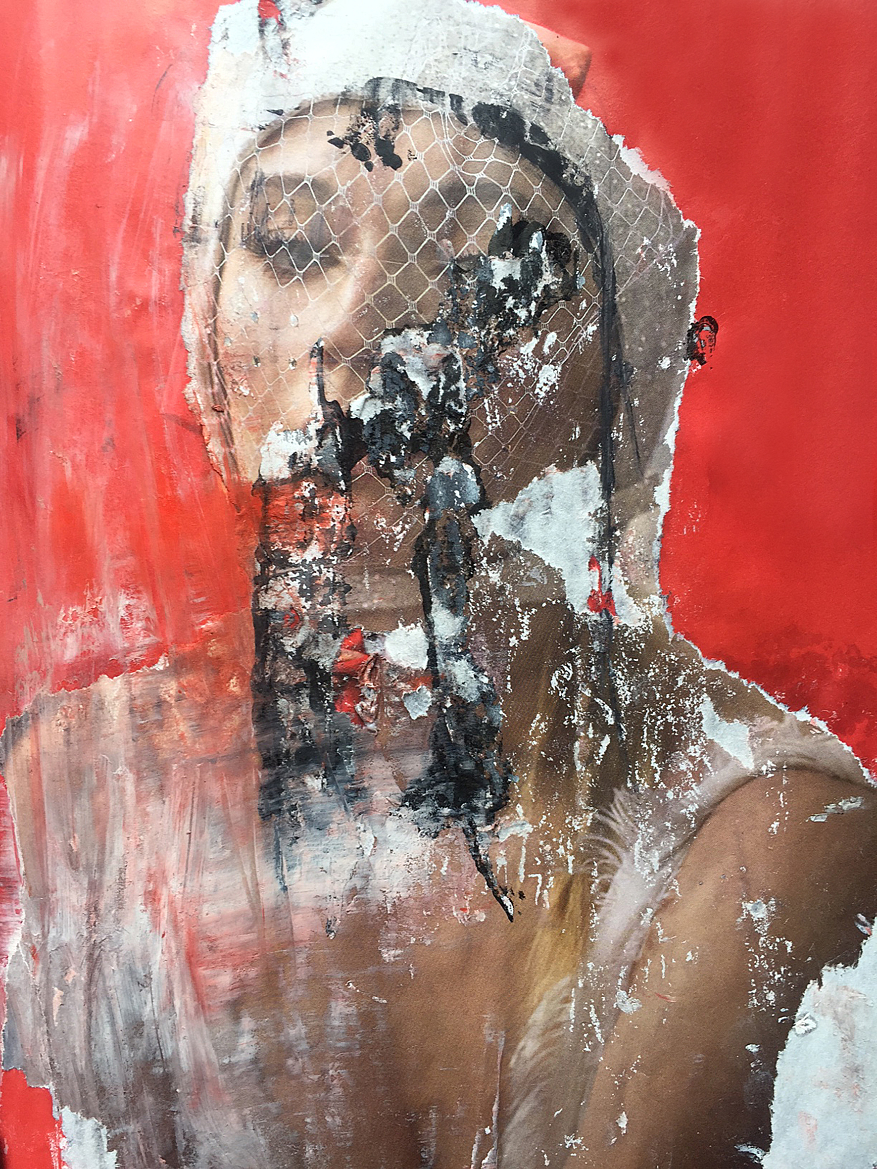 Original digital artwork created with ink, oil paint and pencil mark making and then re-digitised. This is part of an on-going collection of digital collage, created to explore discordant relationships in a dystopic future urban landscape.
